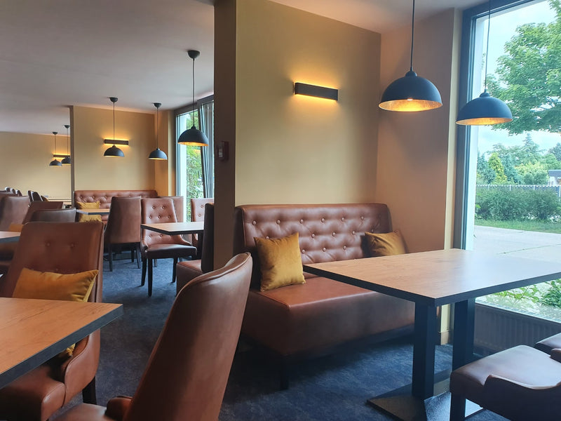 - Haltbarkeit: Möbel und Dekorationen müssen den täglichen Belastungen eines Restaurants standhalten (z. B. Verschmutzung, häufige Reinigung).