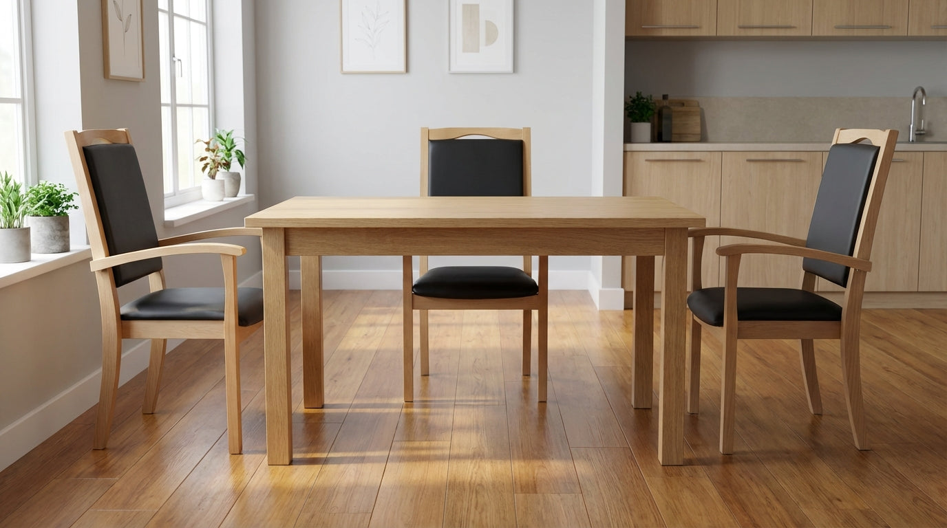 Kein "Pflege-Look": Unsere Stühle passen optisch in jedes Esszimmer. Sie sehen aus wie normale, hochwertige Möbel – nur eben ergonomischer und durchdachter.