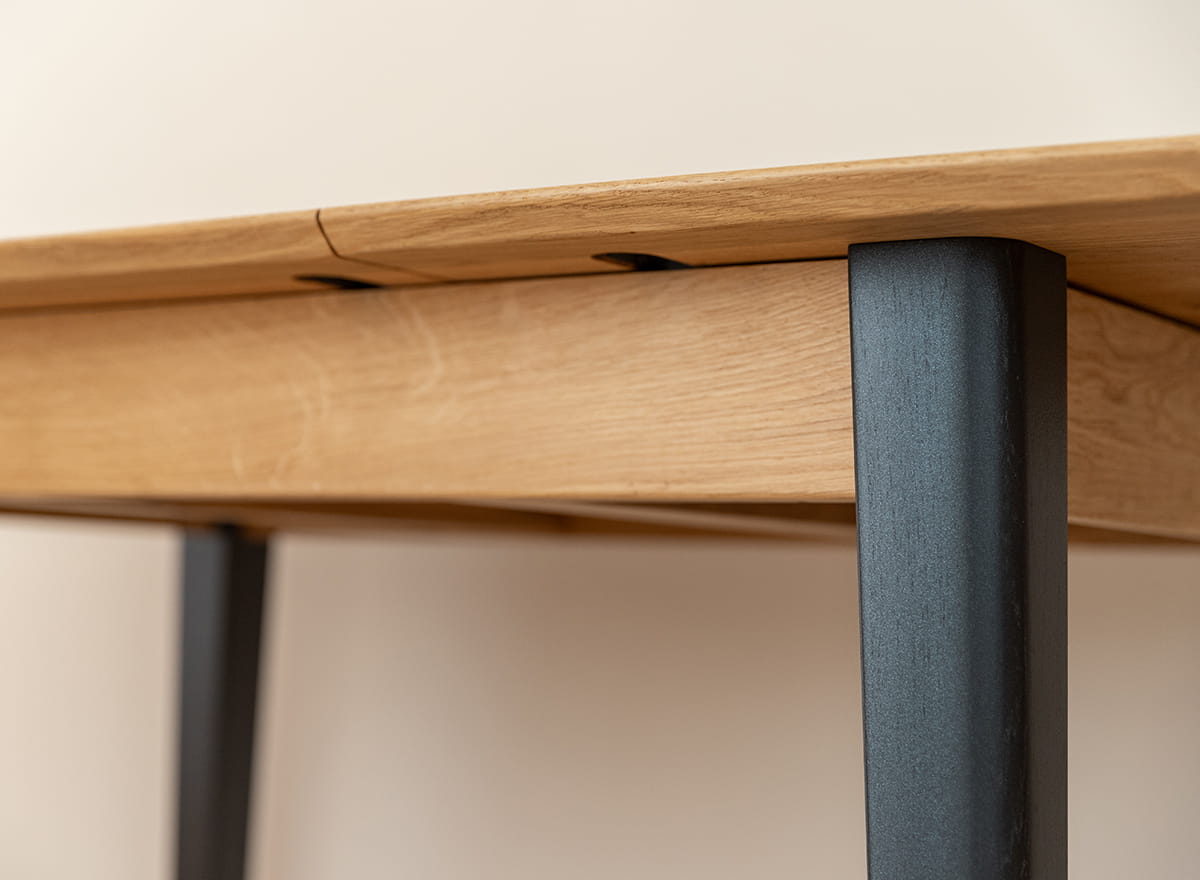 Der Orbetello Esstisch bringt die warme Ausstrahlung von Eichenholz und die Eleganz schwarzer Massivholzbeine in Ihr Zuhause. Ein funktionaler Tisch, der durch Qualität, Design und Flexibilität überzeugt.