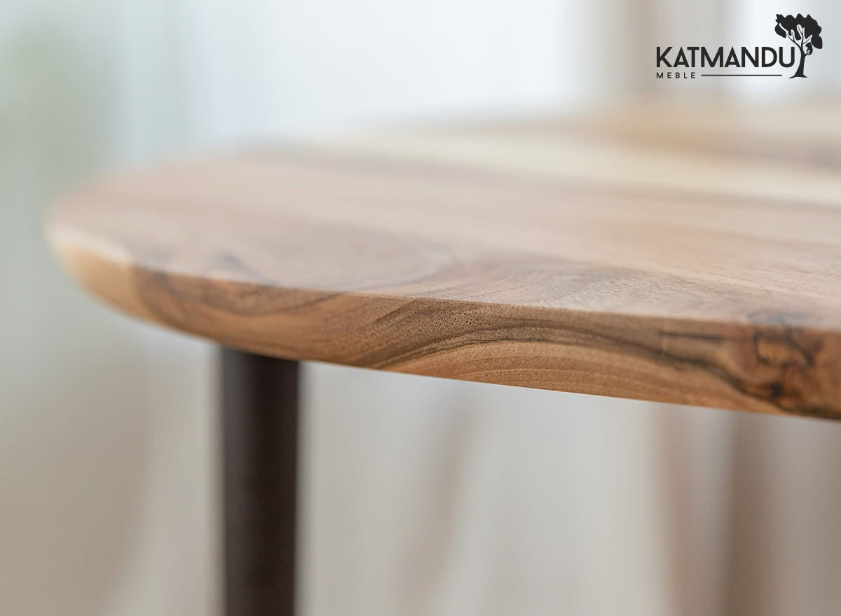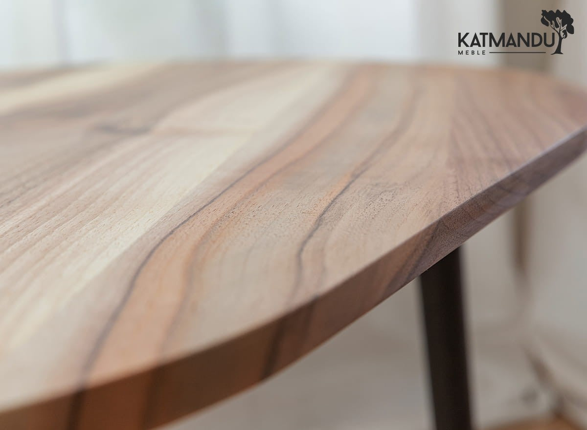 Der Stolik kawowy bringt warme Eleganz und natürlichen Charme in jedes Wohnzimmer. Gefertigt aus hochwertigem Walnussholz, überzeugt er durch seine unregelmäßige, sanft abgerundete Form, die ihn von herkömmlichen Tischen abhebt und zu einem echten Blickfang macht. Die lackierte Oberfläche schützt das Holz vor Abnutzung und verleiht ihm eine langlebige Beständigkeit.