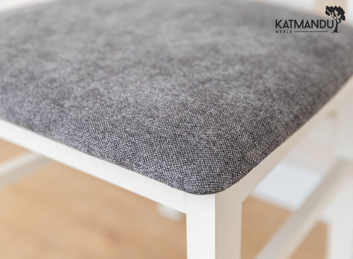 Die komfortable Sitzfläche ist mit dem robusten Davis Storm Stoff bezogen und in drei Farbtönen erhältlich: Beige, Grau und Graphitgrau. Alle Varianten sind pflegeleicht und langlebig, ideal für den täglichen Einsatz im Esszimmer oder in der Küche. Die solide Konstruktion steht sicher und bietet dank der großzügigen Sitzfläche hohen Komfort – auch bei längeren Mahlzeiten.