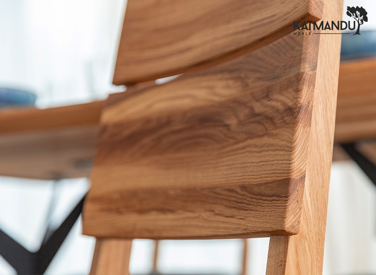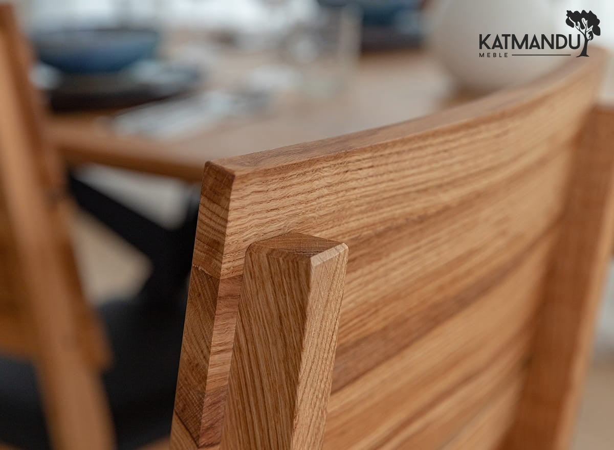 Dieser Esszimmerstuhl aus Eichenholz verbindet natürliche Materialien mit modernem Komfort. Gefertigt aus massiver, geölter Eiche, bringt er Stabilität, Langlebigkeit und einen warmen Naturcharakter in Ihr Zuhause. Die sichtbaren Maserungen und Knoten machen jeden Stuhl zu einem einzigartigen Unikat.