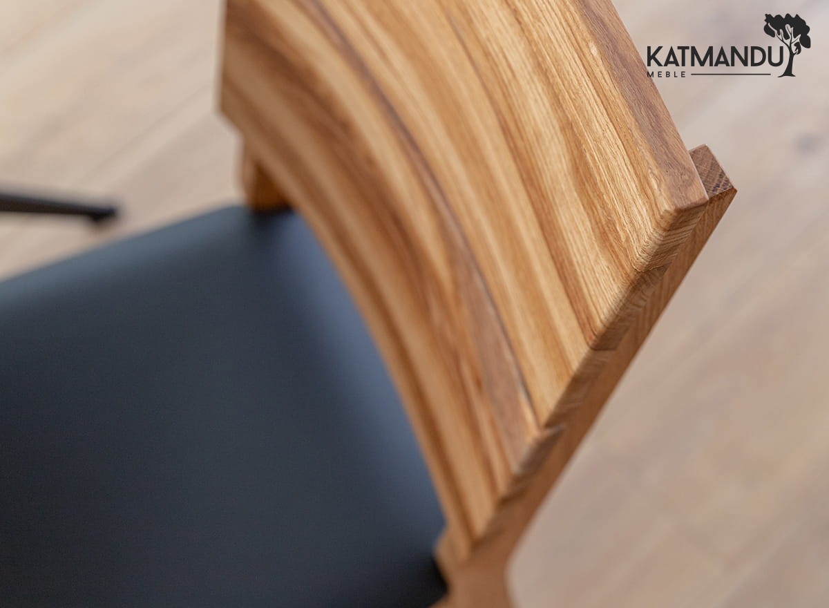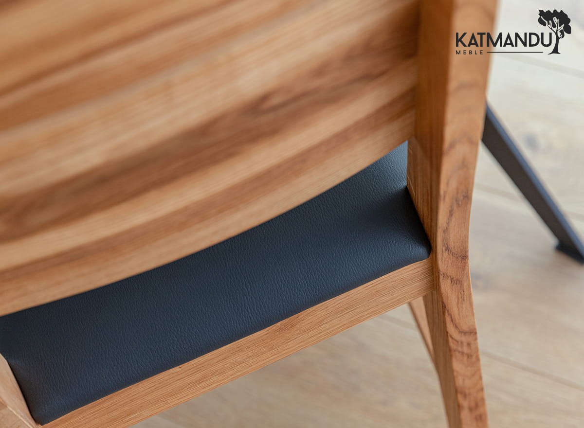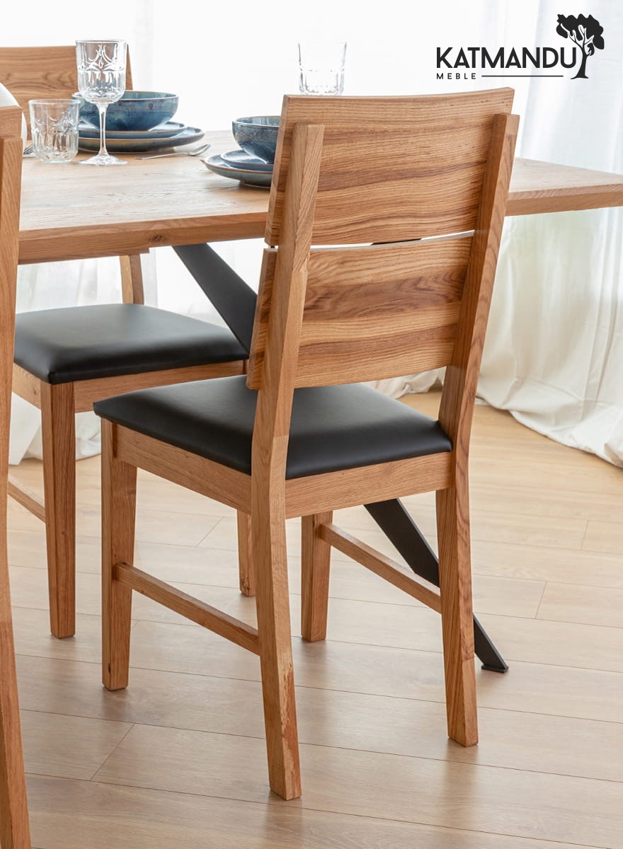 Esszimmerstuhl aus massiver Eiche – mit schwarzer Sitzfläche aus Öko-Leder