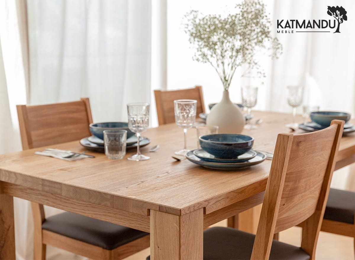 Raumgröße berücksichtigen: Wählen Sie die Tischgröße passend zum Raum – ein zu großer Tisch wirkt schnell überladen, ein zu kleiner geht im Raum unter.