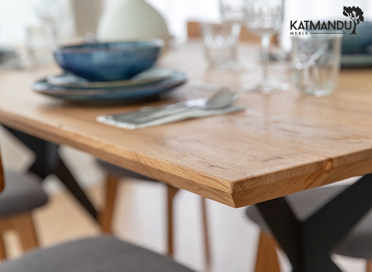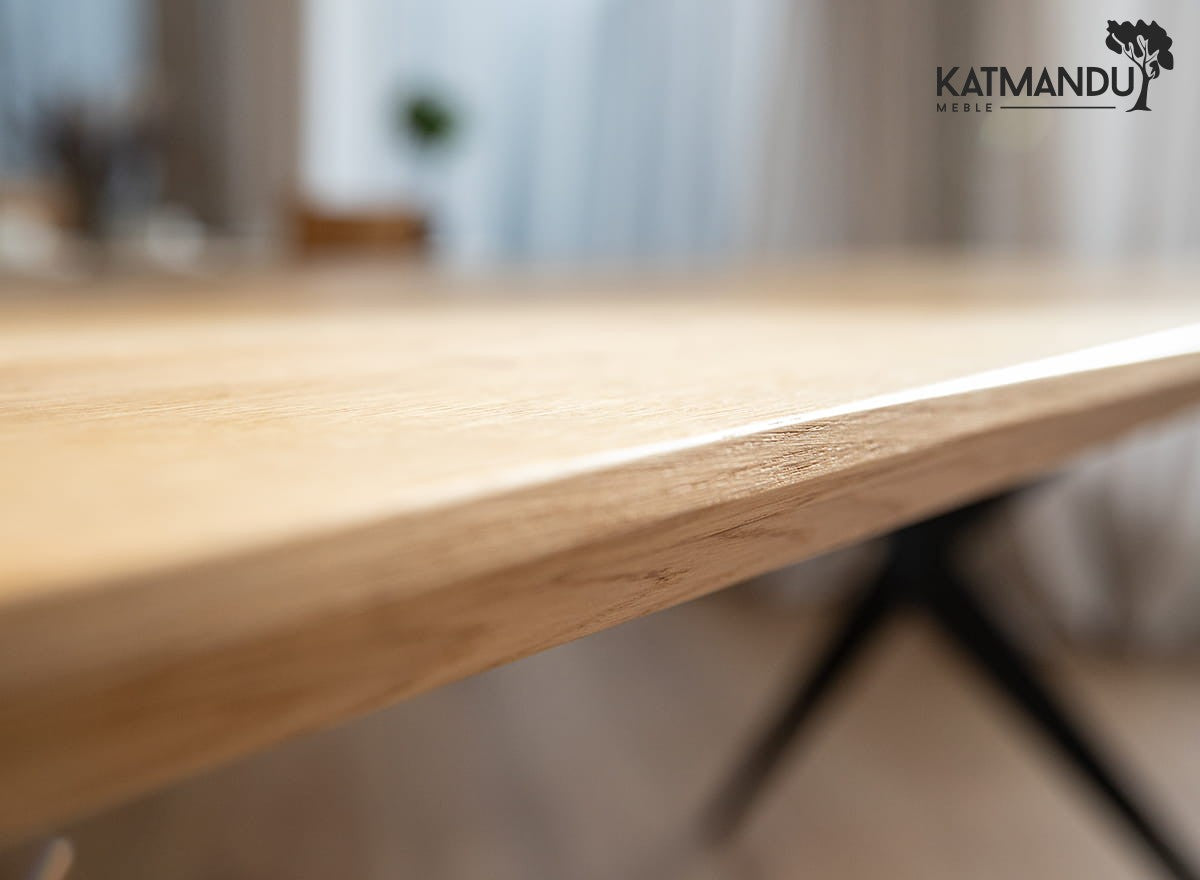 Esstisch Caserta 180 × 90 cm - Massiver Eichenholztisch mit Metallgestell, geölt, Loft-Stil – Qualität, auf die Sie sich verlassen können