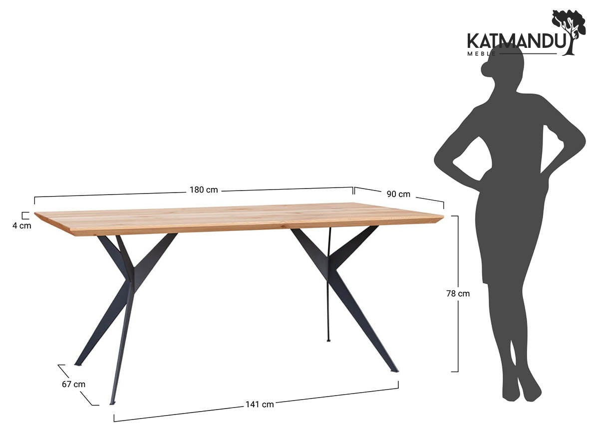 Das Gestell aus schwarzem Metall sorgt für Stabilität und unterstreicht den modernen Loft-Stil. Die Kombination aus warmem Naturholz und kühlem Metall schafft einen ausdrucksstarken Kontrast, der in modernen, industriellen oder minimalistischen Einrichtungen gleichermaßen überzeugt. Mit seinen Maßen von 180 × 90 cm bietet der Tisch ausreichend Platz für gesellige Runden und gemeinsame Mahlzeiten.
