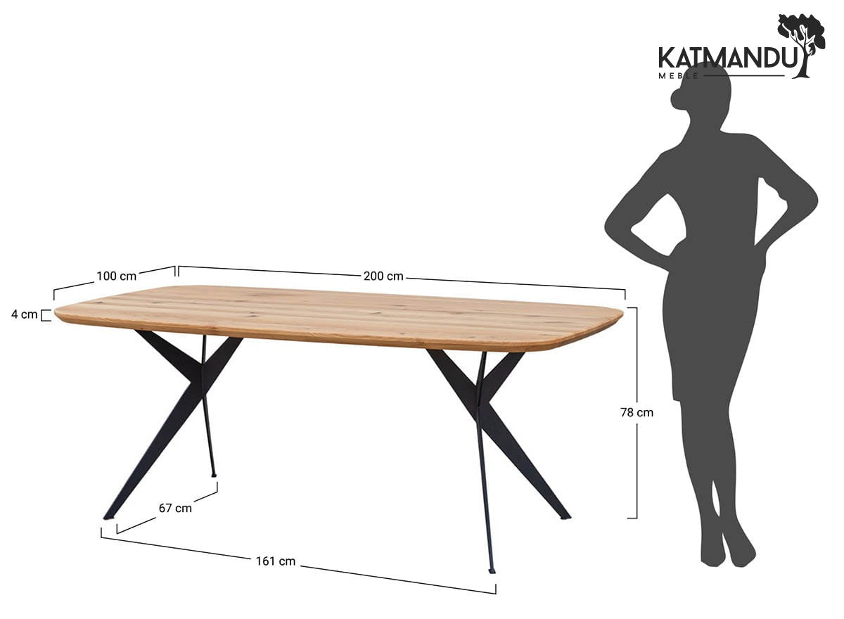 Die pulverbeschichteten Metallbeine in Schwarz bilden einen eleganten Kontrast zur natürlichen Eichenplatte. Ihre schlanke, breite Form sorgt für hohe Stabilität, ohne den Raum optisch zu erdrücken. So entsteht ein harmonisches Möbelstück, das sich sowohl in moderne Loft-Wohnungen als auch in gemütliche Essbereiche perfekt einfügt.