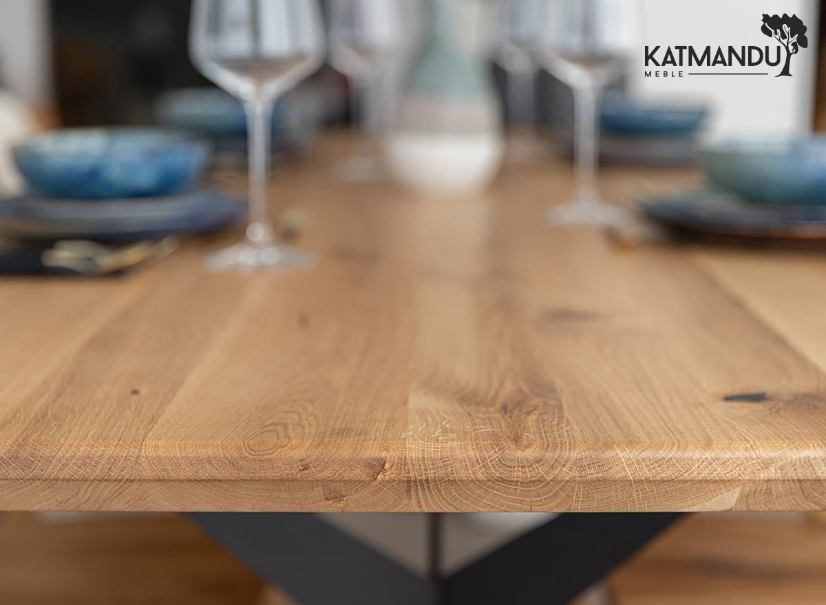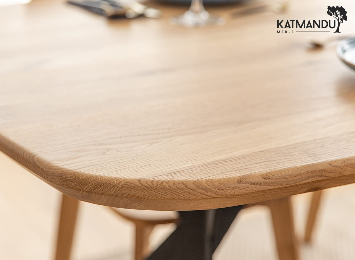 Pflegehinweise für Esstisch Sistina 200 × 100 cm oval - Massiver Eichenholztisch mit Metallbeinen, Loft Design