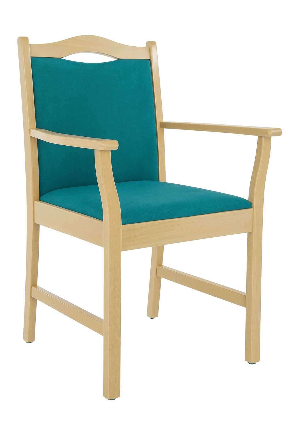 Der Stuhl „Manuel“ mit Armlehnen bietet bequemen Sitzkomfort, stabile Unterstützung und ein klassisches, zeitloses Design. Ob in der Pflegeeinrichtung, im Wartebereich, in Gemeinschaftsräumen oder zuhause – dieser Stuhl überzeugt durch sein robustes Massivholzgestell, ergonomische Polsterung und alltagstaugliche Funktionalität.