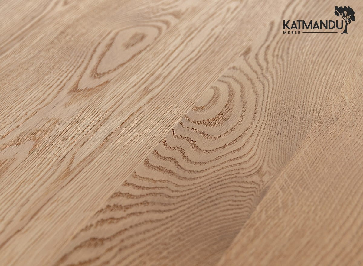 Die sichtbaren Maserungen und Äste unterstreichen den individuellen Charme des Holzes und machen jeden Tisch zu einem Unikat. Die Oberfläche wurde sorgfältig geölt und mit Holzschutzwachs behandelt, um die natürliche Struktur zu bewahren und den Tisch zuverlässig vor Abnutzung zu schützen. Die außen montierten Tischbeine betonen nicht nur das elegante Design, sondern schaffen auch mehr Beinfreiheit und Komfort beim Sitzen.