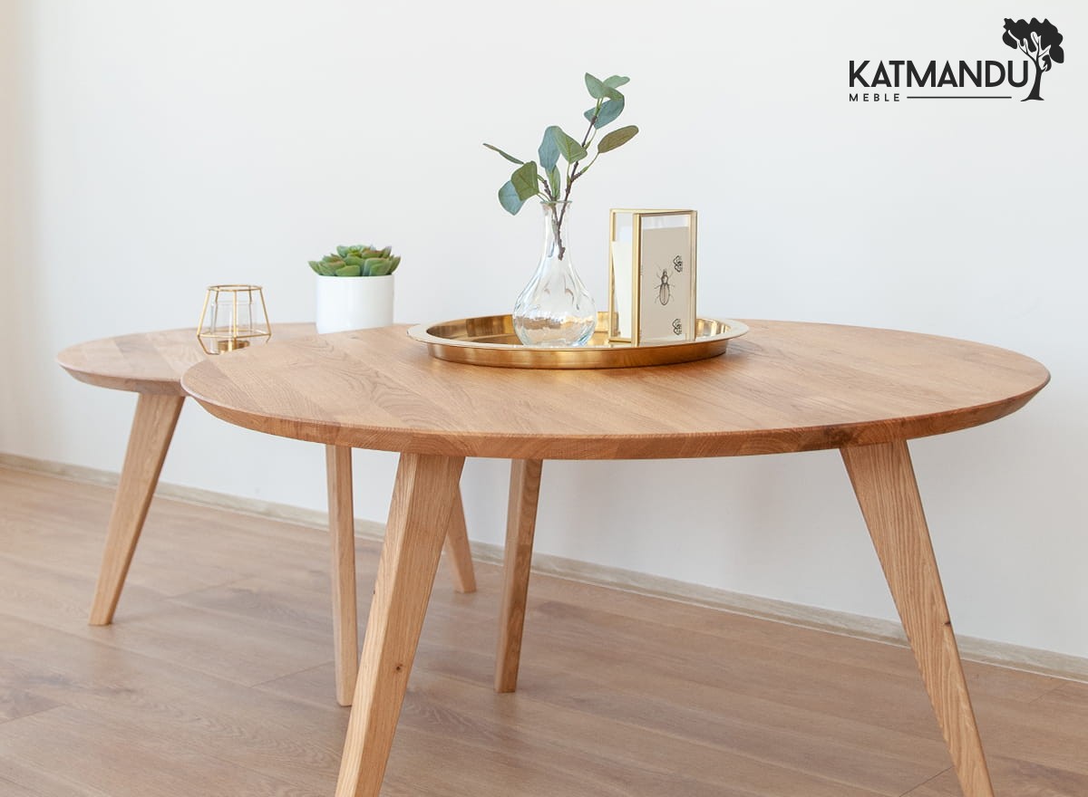 - Runder Couchtisch aus massiver Eiche mit natürlicher Maserung